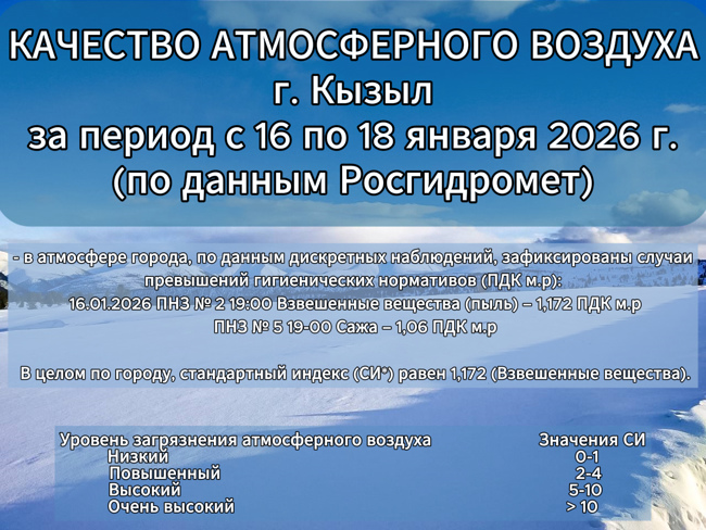 Качество атмосферного воздуха по г. Кызылу за период с 16 по 18 января 2026 г.